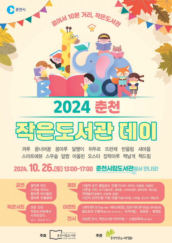 이번 행사는 춘천시립도서관 주최, 춘천작은도서관협회 주관으로 열린다.