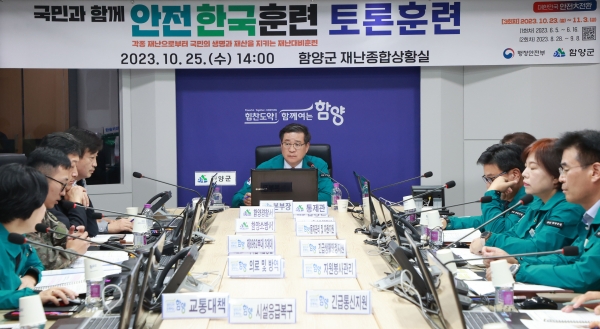 이번 훈련 준비를 위해 함양군은 사전 기획회의와 전문가 컨설팅을 거쳐 체계적인 대응 체계를 마련했으며 재난상황실에서의 토론 훈련과 화재 발생 현장 훈련을 연계해 실제 상황과 같이 훈련을 진행할 계획이다.