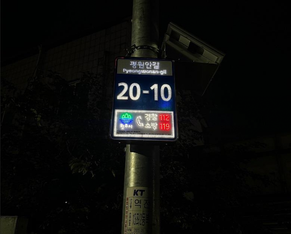 [아시아월드뉴스] 원주시는 야간 보행환경 개선과 범죄예방을 위해 평원동 풍물시장 일원 5개소에 ‘발광형 광섬유 기초번호판’을 설치했다.