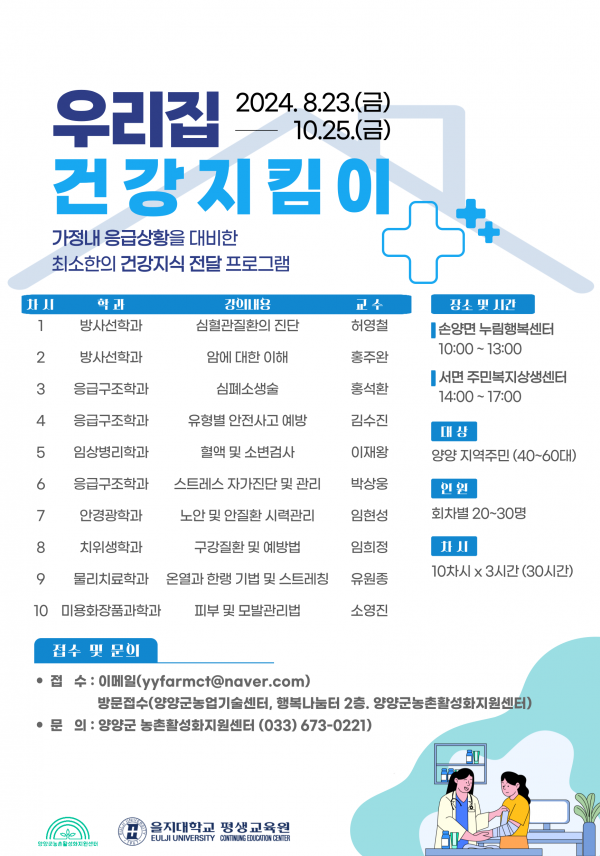 ‘우리집 건강지킴이’ 프로그램은 지역주민들이 가정 내에서 응급처치 방법과 다양한 분야의 건강 및 의료 지식을 습득하고 실습을 통해 이를 활용할 수 있도록 돕는 것을 목표로 운영됐다.