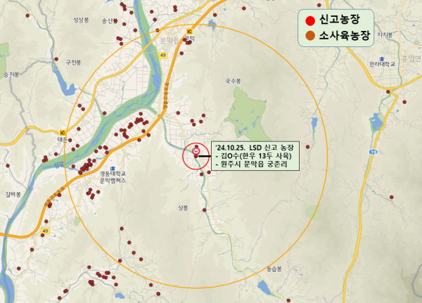 [아시아월드뉴스] 강원특별자치도는 10월 25일 원주시 문막읍 소재 한우농가에서 신고된 럼피스킨 의사환축에 대한 정밀검사를 실시한 결과 최종 양성으로 확진됐다고 밝혔다.