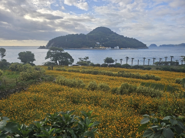 [아시아월드뉴스] 수선화로 유명한 공곶이에 황화코스모스가 활짝 피어 공곶이를 찾는 관광객에게 즐거움을 선사하고 있다.