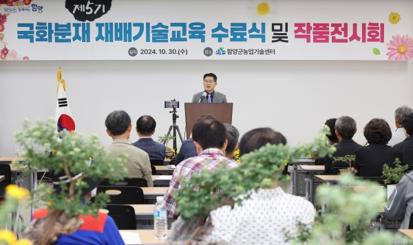 [아시아월드뉴스] 함양군은 30일 농업기술센터에서 제5기 국화분재 재배기술교육 수료식을 성공적으로 개최했다.