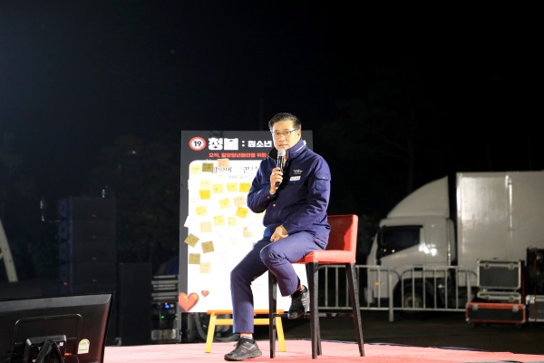 특히 입장 시 작성한 ‘함양에 사는 이유’, ‘청년으로서 함양에 필요한 것’ 등에 대한 의견을 바탕으로 진행된 ‘군수와의 야자타임’에서는 진병영 함양군수와 청년들이 자유롭게 소통하며 궁금증과 건의 사항을 나누는 뜻깊은 시간이 됐다.