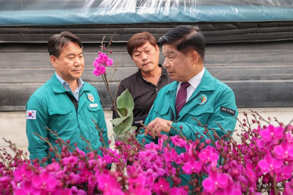 [아시아월드뉴스] 이상근 고성군수는 1일 하일면 수양리 위치한 화훼농업인 최재림 씨의 호접란 시설하우스 농장을 방문해 화훼영농현장의 밝은 미래에 대해 의견을 나누며 격려하는 시간을 가졌다.