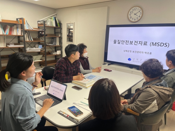 교육내용은 △물질안전보건자료 정의 △MSDS 게시 여부 △산업안전보건법상의 의무사항 △화학물질 소분용기 경고표지 부착 △보호구의 종류 및 착용법 등이다.