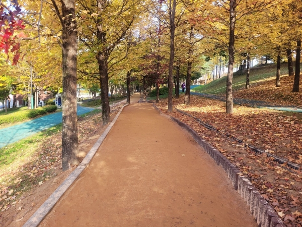 산책로는 황토와 마사토가 적절히 배합되어 이용자들이 다양한 질감의 산책로를 체험할 수 있어 만족도가 높을 것으로 기대된다.
