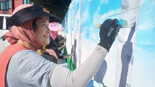 [아시아월드뉴스] 하동군 재능기부봉사단이 지난 8월부터 시작해 세 차례에 걸쳐 남당마을 주차장에서 ‘벽화로 꽃피는 자원봉사’를 진행했다고 밝혔다.