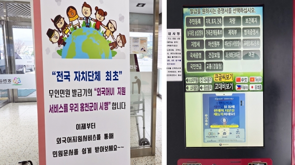 [아시아월드뉴스] 홍천군에서 지자체 중 전국 최초로 이민자들의 민원행정 서비스 개선을 위해 개발한 ‘무인민원발급기 외국어 UI 지원 서비스’ 가 이용자들에게 큰 호평을 받고 있다.
