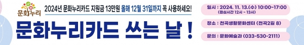 아직 문화누리카드를 사용하지 않은 많은 시민의 방문을 당부드리며 다양한 혜택을 받으시길 바란다”고 말했다.