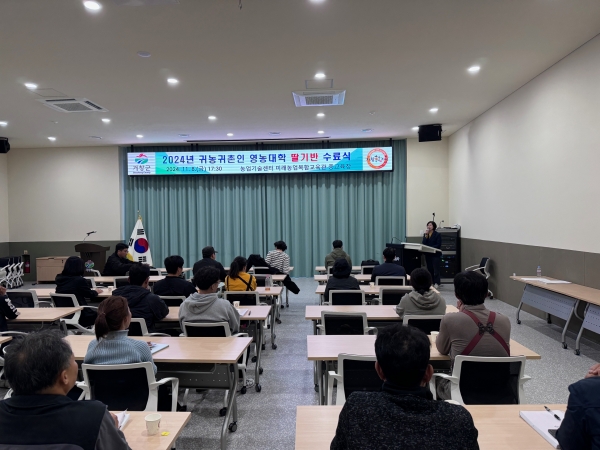 이날 수료식에는 수료생 25명과 행복농촌과장, 교육관계자 등이 참석했으며 축사, 수료증 수여, 사진 촬영 순으로 행사가 진행됐다.