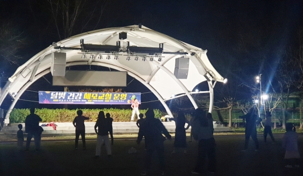 지난 2019년부터 운영된 상림 달빛 건강 체조 교실은 저녁 햇살이 서서히 사라지는 달빛 아래 평일 저녁 7시 30분부터 1시간 동안 신나는 음악과 강사 구령에 맞춰 율동을 따라 하는 것으로 진행됐다.