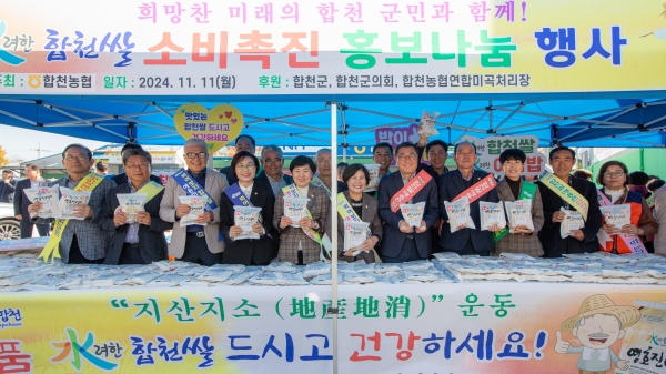 [아시아월드뉴스] 합천군은 11일 합천농협 하나로마트 앞에서 합천농협과 한국여성농업인 합천군연합회가 주최주관하는 “합천 쌀 애용 소비촉진 홍보 나눔 행사”를 펼쳤다.