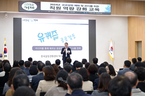 이번 교육은 거제시가 정책을 추진할 때 발생하는 공공갈등을 선제적으로 예방하고 효과적으로 대응할 수 있는 실무능력을 배양하기 위해 마련됐다.