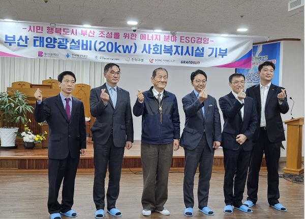 이 사업은 시민 행복도시 부산 조성을 위해 폭염, 혹한기 등 기후 위기에 취약한 사회복지시설을 대상으로 에너지 분야 민·관·공이 협력해 자발적으로 20킬로와트, 5천만원 규모의 태양광발전소를 설치 기부하는 복지사업이다.