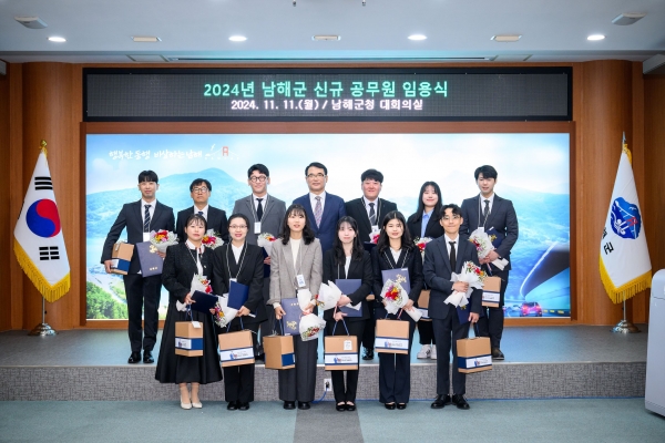 [아시아월드뉴스] 남해군은 11일 군청 대회의실에서 신규공무원 임용식을 개최했다.