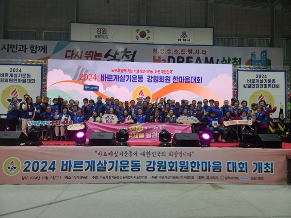 삼척체육관에서 열린 바르게살기운동 강원회원 한마음대회에는 도내 바르게살기운동 회원 1,300여명이 참여해 사회적 갈등 해소, 지역 균형 발전, 사회통합과 바른 대한민국을 만들어 나가기 위한 선도적인 역할을 다짐했다.