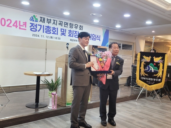 특히 이번 총회에서는 지난 3년간 재부지곡면향우회를 훌륭하게 이끈 양기만 8대 회장이 이임했고 두동마을 출신 강이구 제 9대 신임회장이 모두의 축하 속에 취임했다.