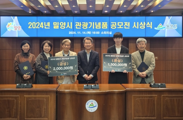[아시아월드뉴스] 밀양시는 지난 14일 시청 소회의실에서 이종황 행정국장, 김효경 관광진흥과장, 수상자 등 10여명이 참석한 가운데‘2024년 밀양시 관광기념품 공모전’ 시상식을 개최했다.