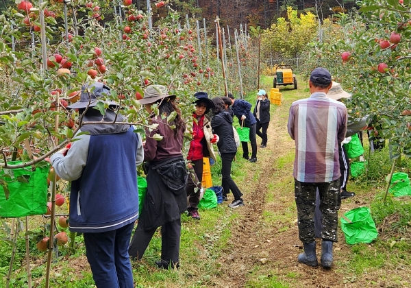 이번 일손 돕기에는 성산면사무소, 수도과, 기술지원과의 직원 등 20여명이 참여해 약 6천600㎡ 규모의 과수원에서 사과 수확 작업을 도왔다.