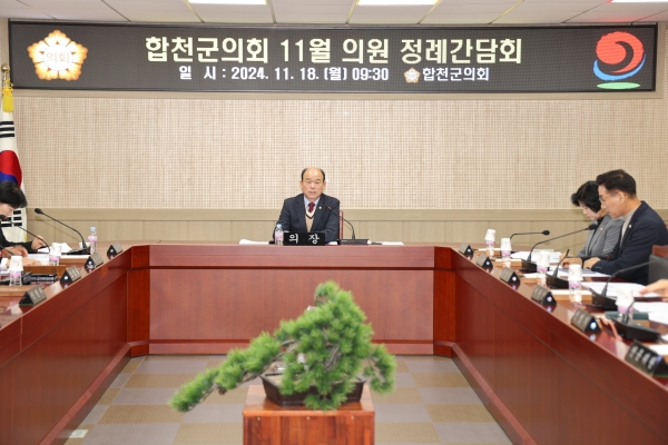 [아시아월드뉴스] 합천군의회는 18일 2024년 11월 첫 번째 의원정례간담회를 개최했다고 밝혔다.