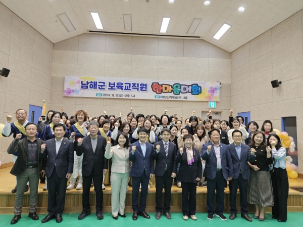 [아시아월드뉴스] 남해군 어린이집연합회는 지난 15일 여성인력개발센터 3층 강당에서 군내 9개 보육교직원 및 내빈 등 100여명이 참석한 가운데 보육 교직원들의 화합과 원활한 소통의 장을 위한 ‘남해군 보육교직원 한마음대회’를 개최했다.