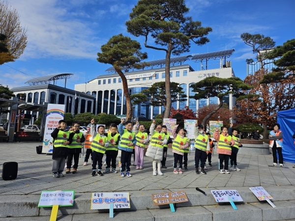 특히 동동어린이집 원아들의 준비한 특별 홍보 공연은 순수한 목소리로 아동학대 예방 메시지를 전달하며 현장 분위기를 한층 감동적으로 만들었다.