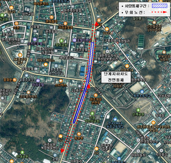 [아시아월드뉴스] 원주시는 단계동 1027번지 일원 단계 지하차도 내벽 청소를 위해 오는 23일 오전 8시부터 오후 5시까지 지하차도 구간 양방향 전면통제를 시행한다.