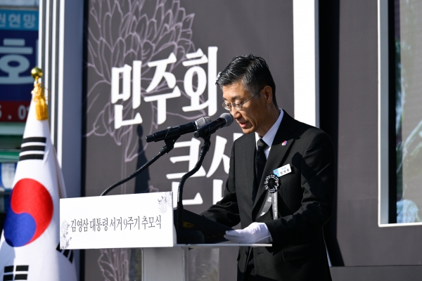 정석원 시장 권한대행은 추모사에서 “김영삼 대통령님은 우리나라 민주주의 역사에서 지울 수 없는 발자취를 남기신 분이었다”며 “9년 이라는 시간이 흘렀지만, 대통령님이 남기신 통합과 화합이라는 유훈은 여전히 우리의 가슴 속에 살아 숨쉬고 있다”며 추모의 말을 전했다.