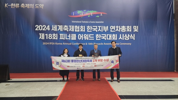 [아시아월드뉴스] 통영한산대첩문화재단은 지난 20일부터 21일까지 충남 금산군 다락원에서 열린 축제인들의 축제, 축제계의 올림픽이라 불리는 ‘세계축제협회 한국지부 연차총회 및 피너클 어워드(Pinnacle Awards 한국대회 ’에서 제63회 통영한산대첩축제가 영상미디어부문과 대표 프로그램 부문에서 각각 금상과 은상을 수상했다고 22일 밝혔다.
