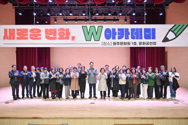 한편 W아카데미는 다양하고 질 높은 평생교육의 기회를 제공해 지역 지성, 시민, 공직자 등이 원주시의 새로운 변화를 위한 지혜와 생각을 교류하는 토론의 장을 마련하고자 개설된 교육 프로그램으로 매월 1회 운영되고 있다.