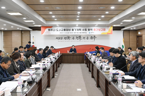 원강수 원주시장을 비롯해 관계 공무원, 교통전문가 등 총 30여명이 참석한 가운데, 용역 진행 상황과 원주시 교통 현황, 장래 교통 수요 예측, 문제점 분석을 통해 중장기 교통정책의 비전과 목표를 제시했다.