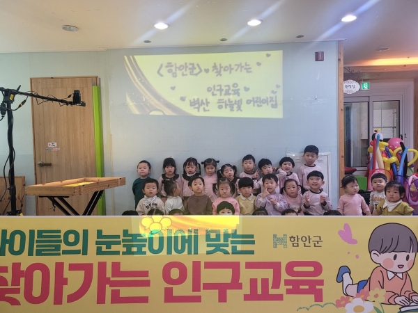 [아시아월드뉴스] 함안군이 주관한 ‘찾아가는 맞춤형 인구교육’ 이 지난 15일과 25일 충무어린이집과 벽산하늘빛어린이집에서 성황리에 진행됐다.