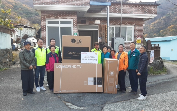 이번에는 칠원읍 산정경로당이 선정돼 자사에서 생산한 텔레비전·냉장고·공기청정기를 기부하고 제품 설치까지 진행했다.
