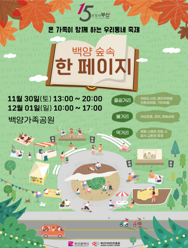 [아시아월드뉴스] 부산시는 내일부터 12월 1일까지 이틀간 백양가족공원에서 ‘백양 숲속 한 페이지’ 행사를 개최한다고 밝혔다.