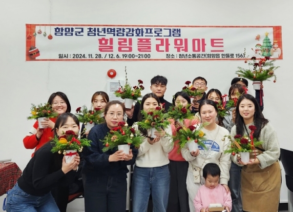 이번 힐링플라워아트 프로그램은 함양군 청년정책네트워크에서 청년들의 역량강화를 위해 기획·운영하는 청년역량강화 프로그램 중 하나로 크리스마스 센터피스 만들기를 통해 식물을 활용한 정서적 안정감을 제공하고 청년 간 네트워크 활성화를 위해 마련됐다.
