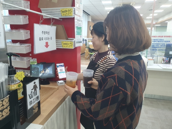 이후 음료를 주문하면서 QR코드를 대여기에 스캔하면 양산e컵을 받을 수 있다.