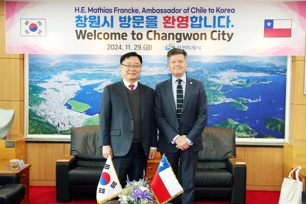 마티아스 프랑케 주한 칠레 대사는 “2022년 창원 K-POP 월드 페스티벌 칠레팀 우승 당시 창원을 방문했던 좋은 기억이 있다”며 “창원을 다시 방문할 수 있어 뜻깊고 이번 방문을 통해 한국의 수소중심도시 창원의 우수한 기업 역량과 수소 인프라에 감명받았다”고 전했다.