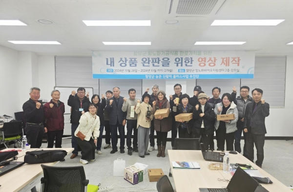 [아시아월드뉴스] 함양군과 함양군 농촌 신활력플러스 사업단은 지난 28일 오후 6시 항노화바이오 지원센터 교육장에서 교육생 24명이 참석한 가운데 ‘내 상품 완판을 위한 영상 제작 교육’ 수료식을 개최하며 8회차에 걸친 교육 과정을 마무리했다.