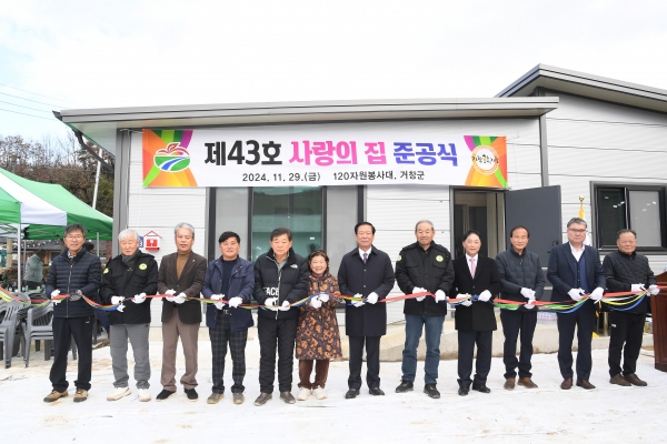 [아시아월드뉴스] 거창군은 지난 29일 120자원봉사대 주관으로 가조면 석강마을에서 ‘제43호 사랑의 집’ 준공식을 개최했다.