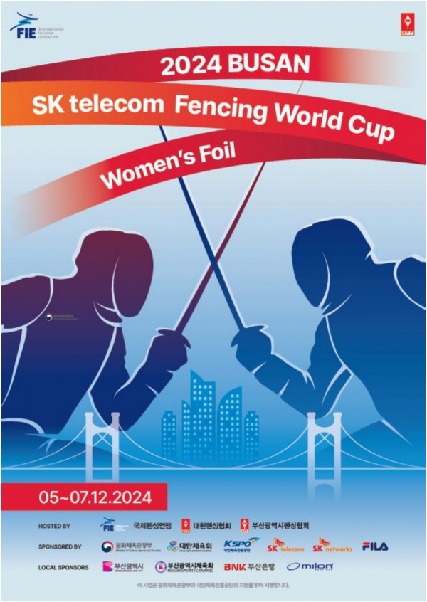 [아시아월드뉴스] 부산시는 오는 5일부터 7일까지 금정체육공원 실내체육관에서 ‘2024 부산 에스케이 텔레콤 여자 플러레 국제 월드컵 펜싱 선수권 대회’ 가 개최된다고 밝혔다.