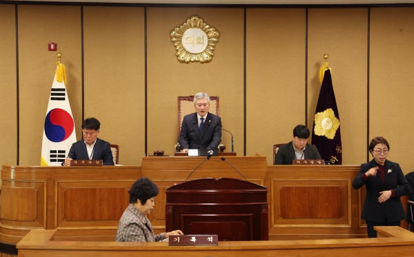 정영섭 부의장은 개회사에서 “이번 정례회는 내년도 예산안 심사를 통해 2025년 새해를 설계하는 중요한 회기이므로 의회와 집행기관이 한층 더 긴밀한 소통과 협력을 통해 군민의 기대에 부응하는 생산적인 회기가 되기를 바란다”고 당부했다.