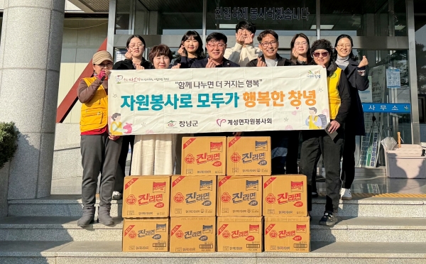 [아시아월드뉴스] 창녕군 계성면은 지난 2일 계성면자원봉사협의회에서 지역사회의 따뜻한 나눔을 실천하기 위해 라면 10박스를 기탁했다고 밝혔다.