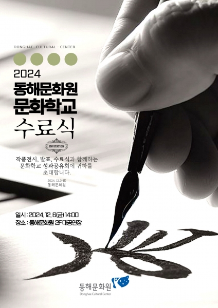 한편 12월 6일까지 동해문화원 1층 로비에서 서화, 민화, 전통 매듭공예, 캘리그라피 등 다양한 장르의 작품들이 전시된다.