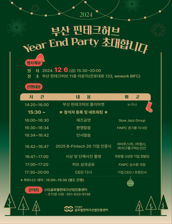 특히 ‘비-핀테크 20’ 기업 인증식을 통해 기업의 성장을 독려하고 '부산 핀테크 허브'의 운영 성과를 공유하며 향후 비전을 모색할 예정이다.