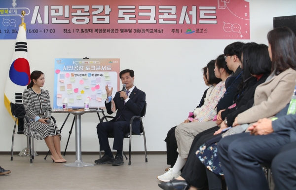 [아시아월드뉴스] 밀양시는 지난 5일 구. 밀양대학교 복합문화공간 ‘열두달’에서 시민 공감 토크 콘서트를 개최해 시민과 소통하며 시 발전 방안을 모색했다.
