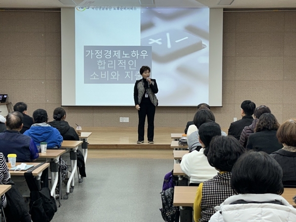 이날 교육은 국민연금공단 창원지사 노후준비서비스팀 박명희 전문강사를 초청해 ‘지출관리와 금융사기 예방’을 주제로 저소득 대상자들의 가정경제 노하우와 합리적인 소비 지출 등에 대한 교육과 사업 안내를 중심으로 진행됐다.