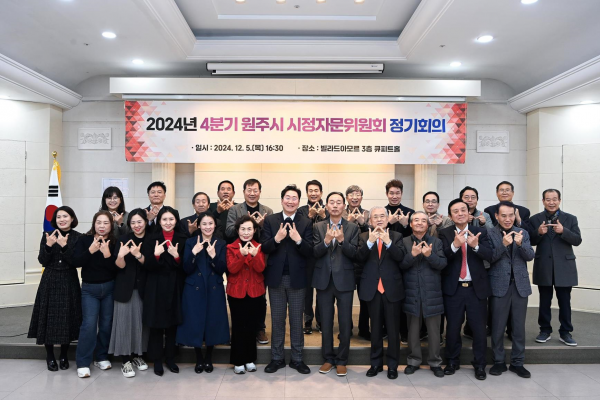 [아시아월드뉴스] 원주시는 지난 5일 빌라드아모르에서 ‘인구 50만 이상 대도시 권한 확보 공감대 확산’을 주제로 각계 전문가의 의견을 수렴하기 위한 시정자문위원회 4분기 정기회의를 개최했다.