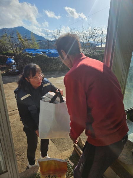 [아시아월드뉴스] 남해군은 마을행복나눔터와 함께 고독사 위험군에 있는 청장년 1인 가구를 방문해 식품 및 생필품으로 구성된 ‘행복나눔꾸러미’를 전달하고 있다.