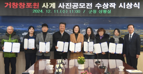 [아시아월드뉴스] 거창군은 거창창포원의 사계절 아름다움을 널리 알리기 위해 진행한 ‘거창창포원 사계 사진 공모전’의 시상식을 11일 군청 상황실에서 개최했다.